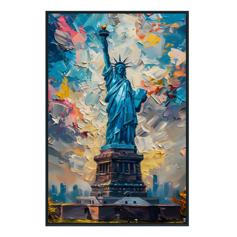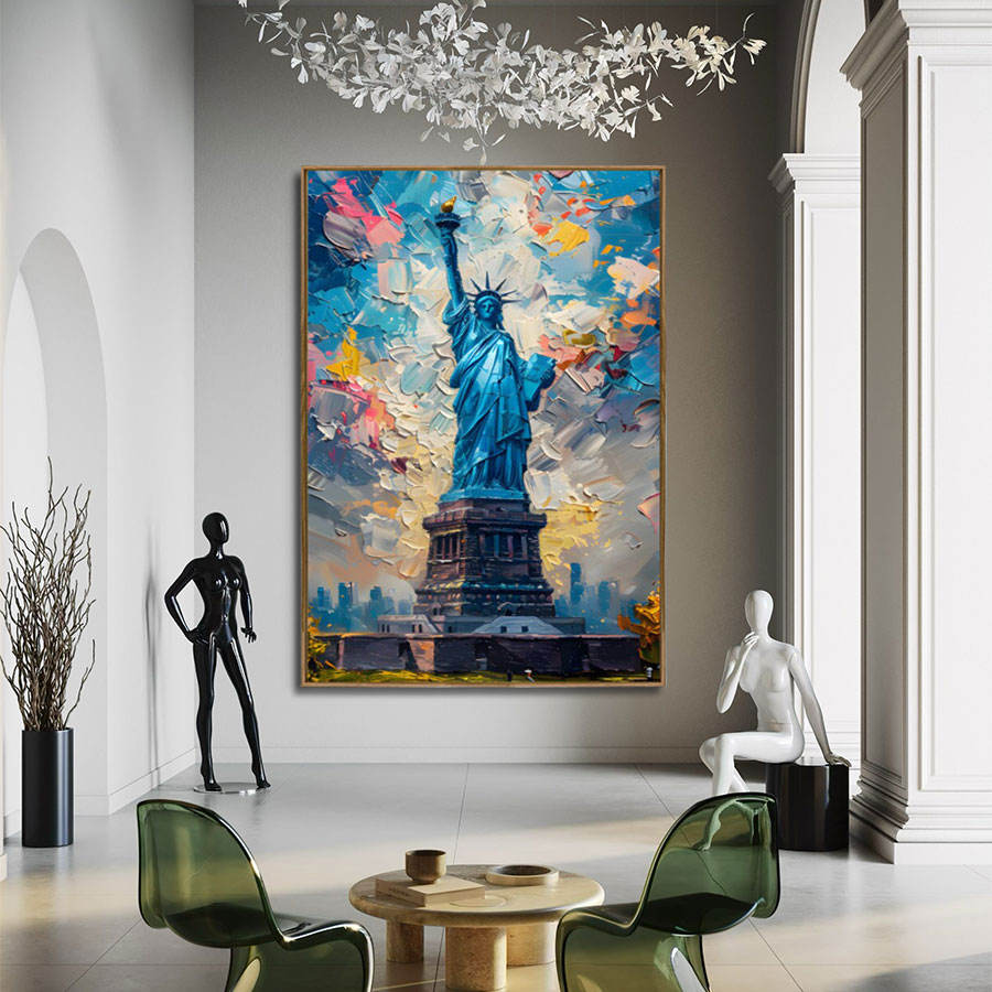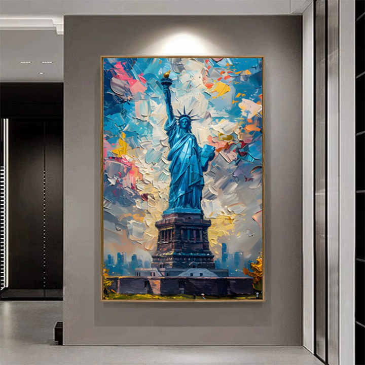 Peinture sur toile de haute qualité représentant la Statue de la Liberté, peinture au couteau, surdimensionnée, art mural personnalisé, portraits texturés au couteau