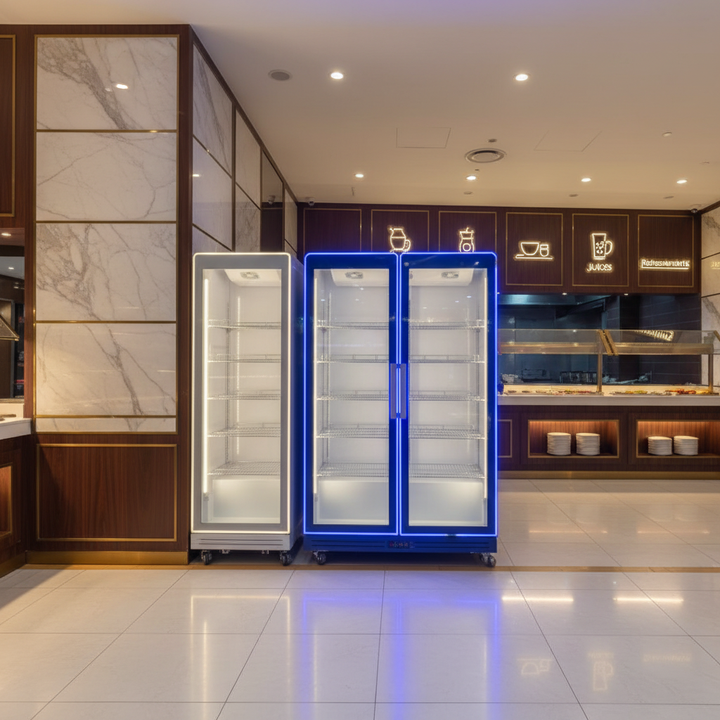 Vitrine Réfrigérée Commerciale Verticale de Haute Qualité avec Refroidissement par Ventilateur, Étagères Ajustables et Affichage Numérique pour Boulangerie et Boissons