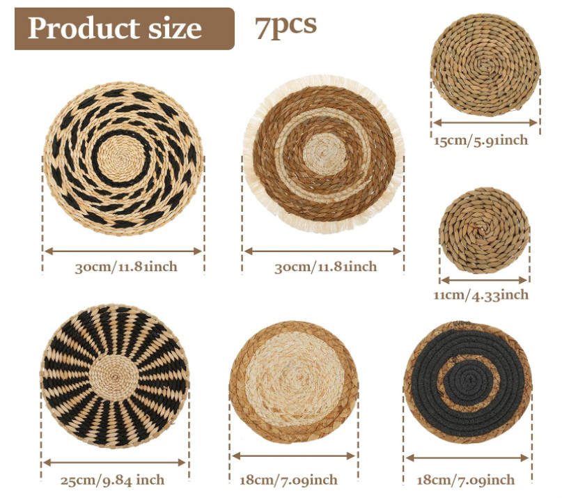 Haute qualité ferme 7 Pack rond suspendu jonc de mer rotin osier tissé mur panier décor Boho mur panier décor