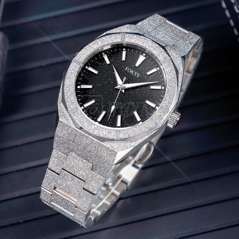 High Quality Fashion Custom Logo Private Label OEM Stainless Steel Bling Luxury Star Dust Men Quartz Frosted Watch for Men