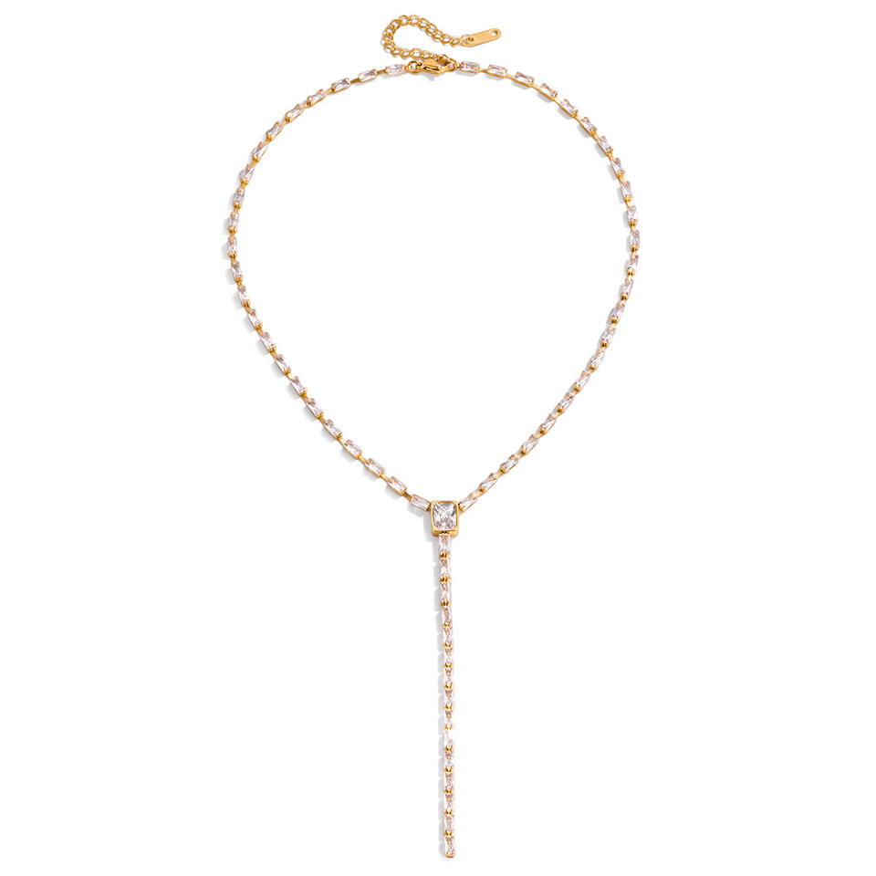 Bijoux de mode de haute qualité dames Rectangle Zircon longue chaîne lien collier 18K en acier inoxydable Y collier