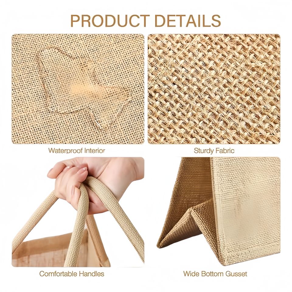 Sac fourre-tout en toile de jute naturelle noir et jaune imperméable de haute qualité pour le shopping