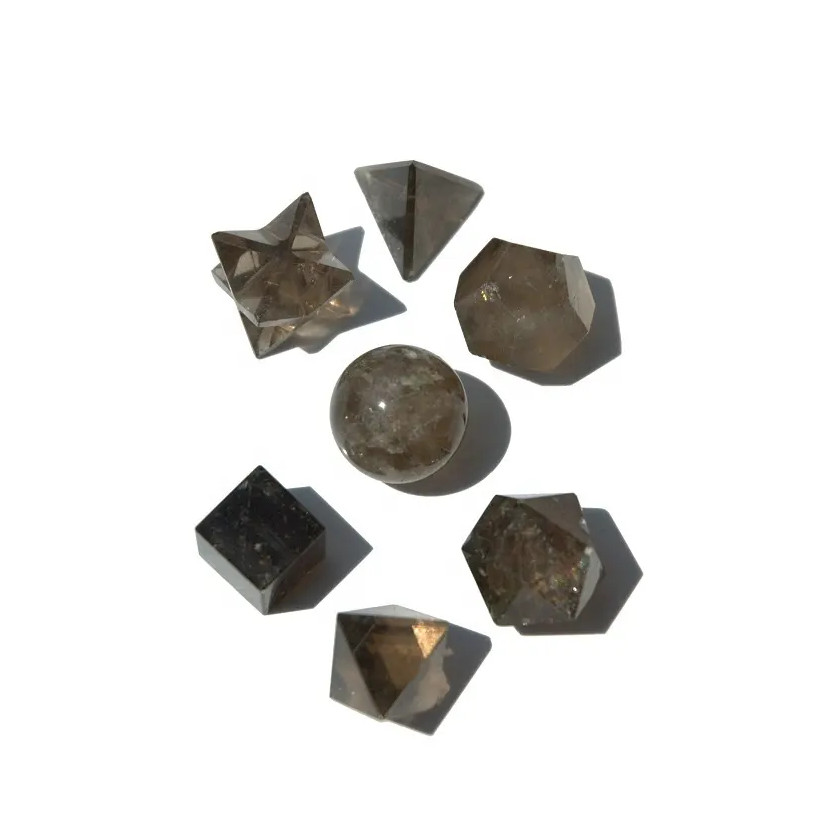 Ensemble de géométrie en cristal de Quartz fumé Feng Shui de haute qualité sculpté à la main solides platoniques Sculpture en pierre naturelle sacrée