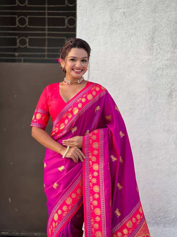 High Quality Festival Wear Ladies Clothing Indian Saree Soft Silk Fabric Contrast Border Traditional Dress South Indian Style