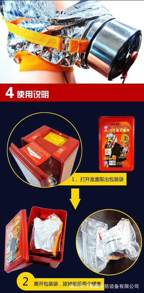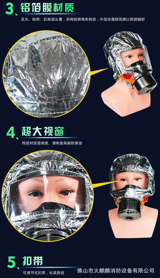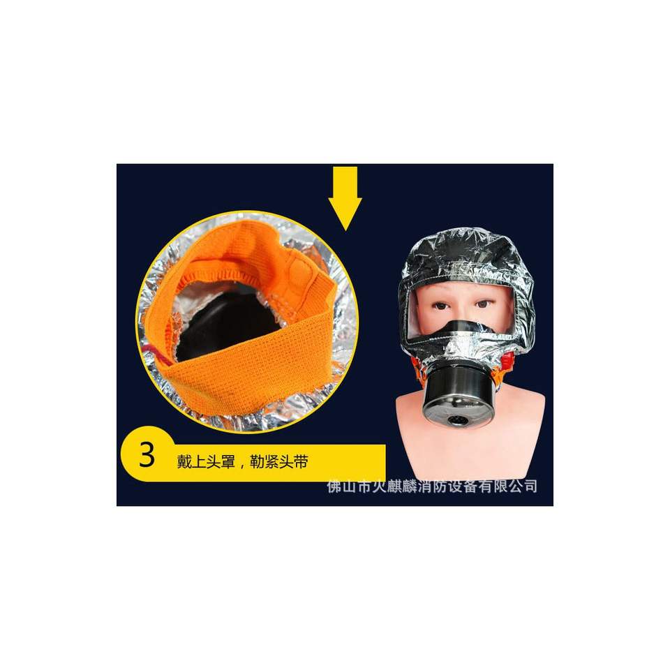 Masque anti-feu de haute qualité avec caractéristiques anti-poussière et anti-fumée pour les hôtels d'urgence équipé d'un filtre de masque anti-incendie respiration d'auto-sauvetage