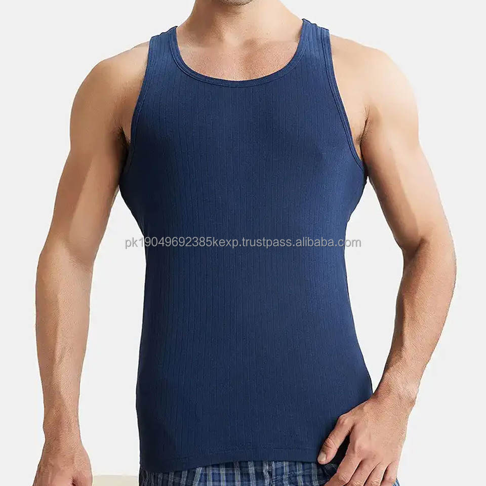 High Quality Fitness Bodybuilding Gym Tank Tops Wholesale Men's Singlet Casual Ribbed Cotton Elastic Knitted Vest