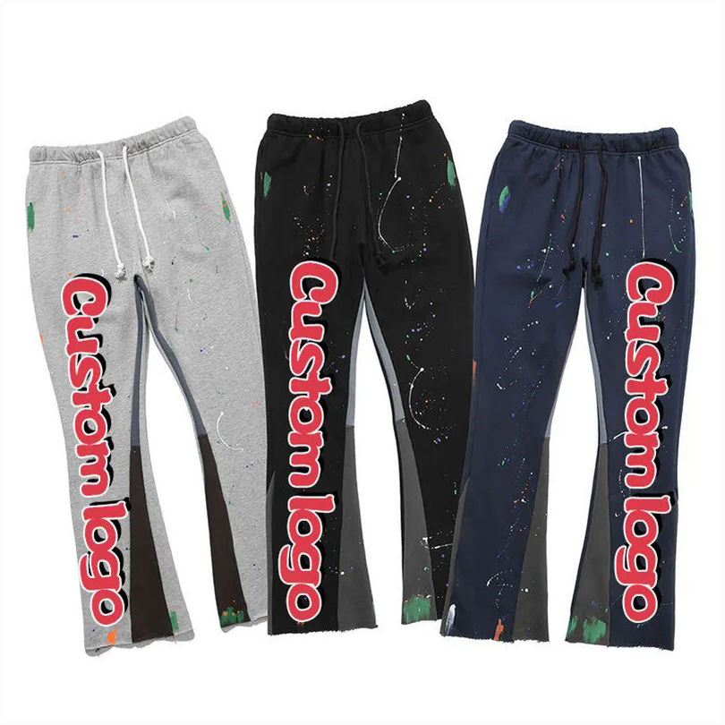 Pantalon de jogging évasé de haute qualité pour homme, noir, décontracté, imprimé graphique, séchage rapide, respirant, 100 % polyester, avec cordon de serrage