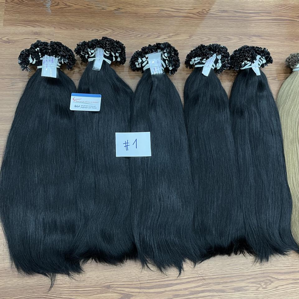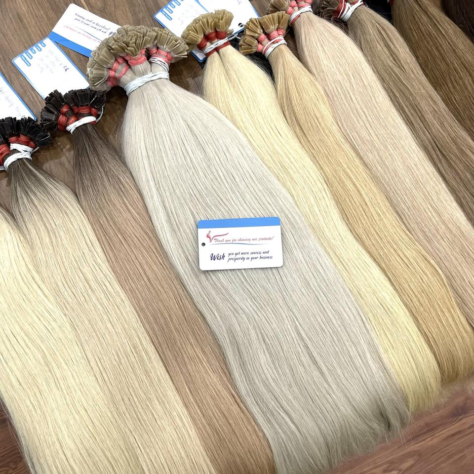 Cheveux humains vietnamiens vierges droits naturels de haute qualité à pointe plate et couleur piano
