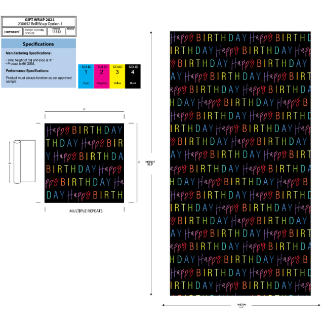 Films d'emballage de motif alphabétique floral de haute qualité emballage cadeau en papier de joyeux anniversaire de style boutique de vente chaude