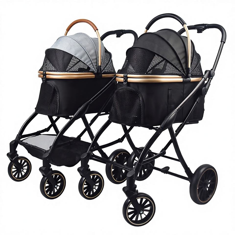 Poussette de jogging pliable de haute qualité confortable et étanche 4 roues pour chiens jumeaux et grands chats