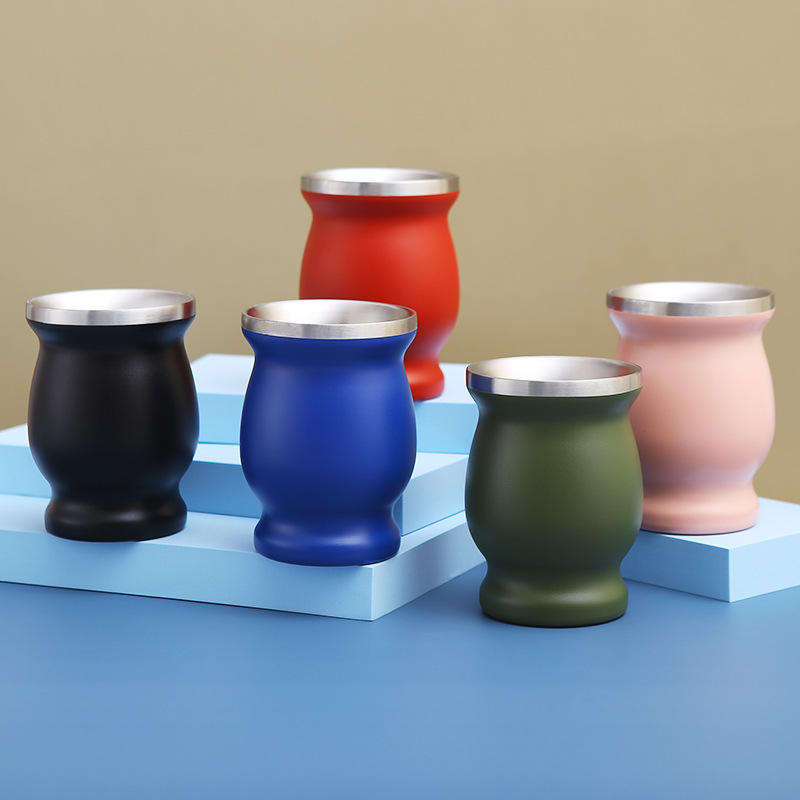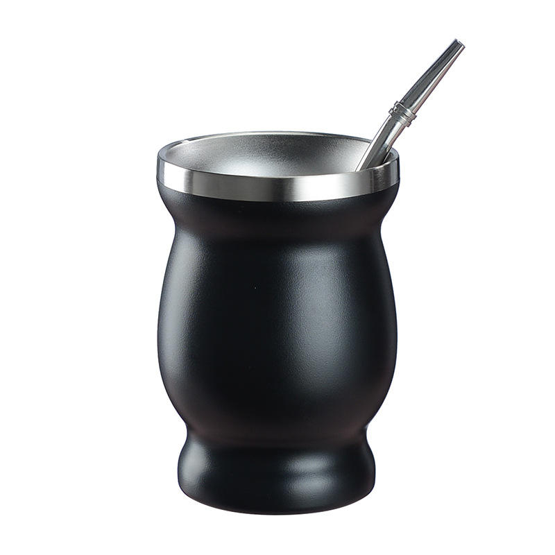Commerce extérieur de haute qualité nouvelle tasse en acier inoxydable à double paroi de 8oz en forme de gourde avec paille et brosse