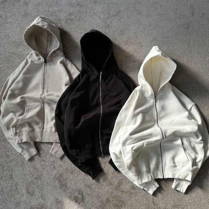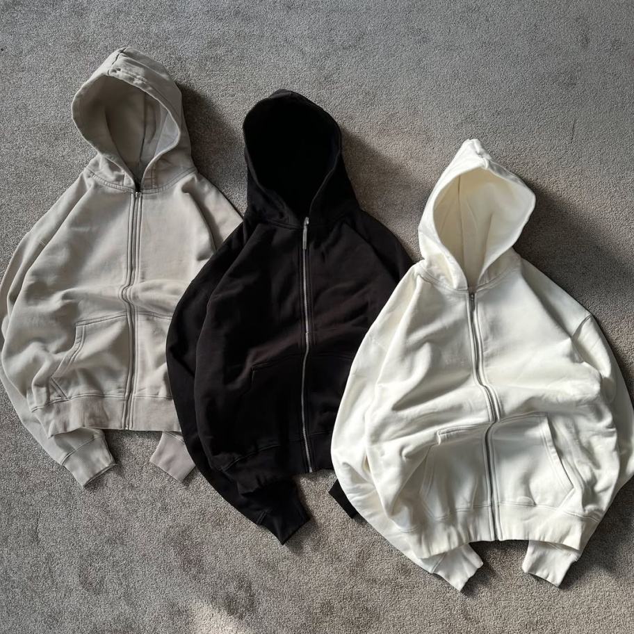 Veste zippée doublée en molleton français de haute qualité 400 g/m² Impression ou broderie de logo personnalisé Sweat-shirt vintage style oversize