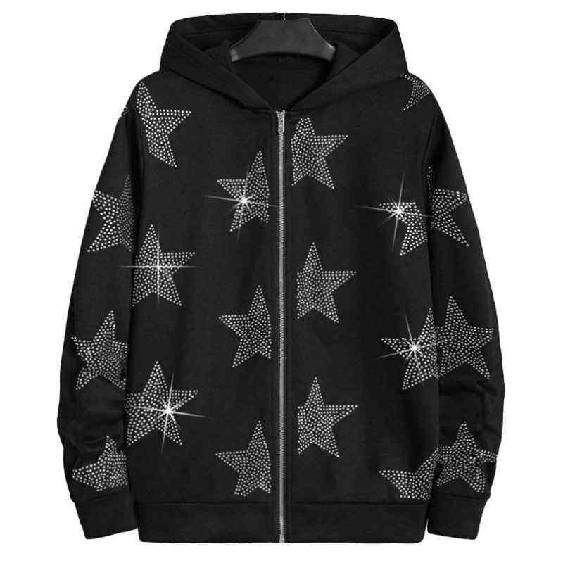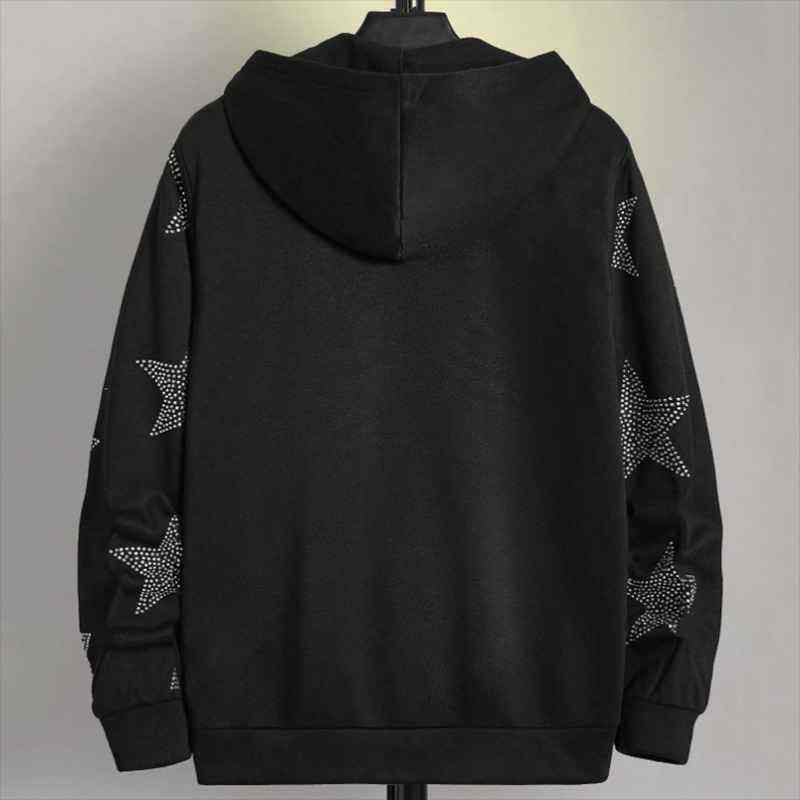 Sweat à capuche intégral zippé d'hiver de haute qualité, personnalisé, en coton mélangé noir, avec strass, respirant et à séchage rapide