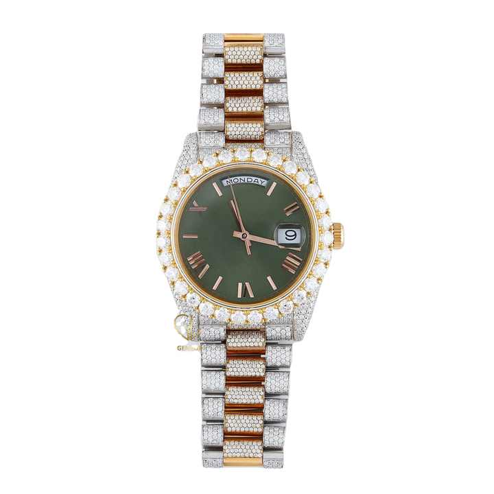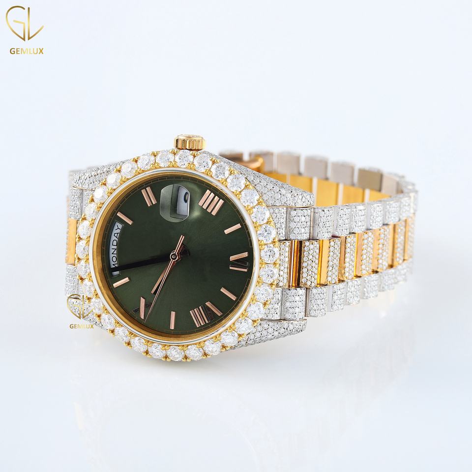 Haute qualité entièrement glacé analogique en acier inoxydable Hip Hop Pass diamant testeur Moissanite clouté diamant montre pour hommes
