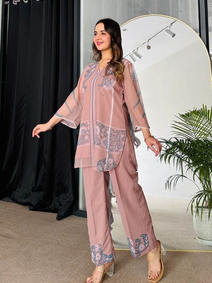 Ensemble haut et bas de pêche moderne et traditionnel Salwar Kameez de style pakistanais Fusion de haute qualité pour les fêtes