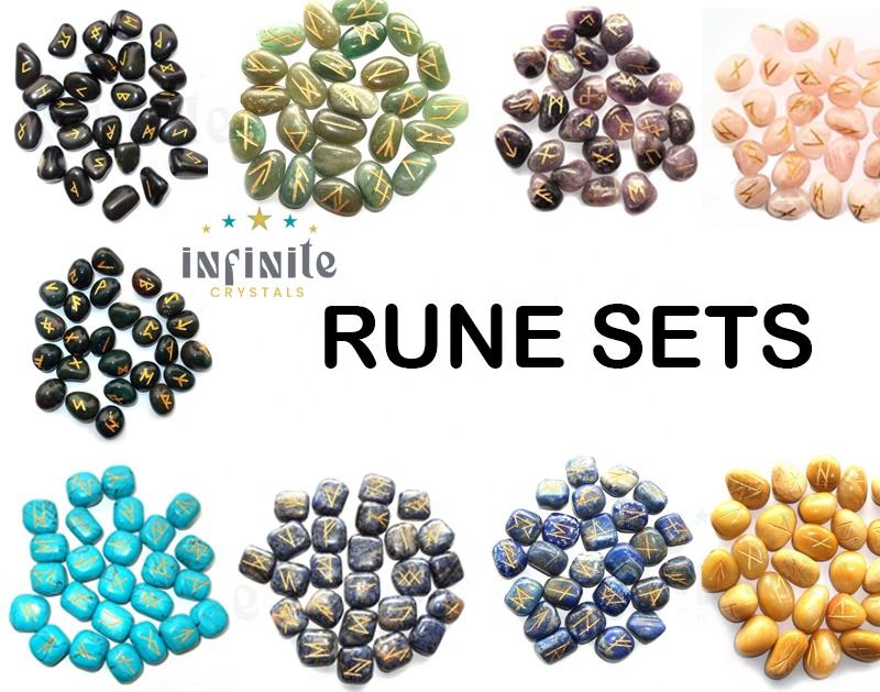 Haute qualité Futhark cristal Rune pierre ensemble Lapis Lazuli pierres précieuses Feng Shui gratuit sculpté amour guérison pierres gravées en gros