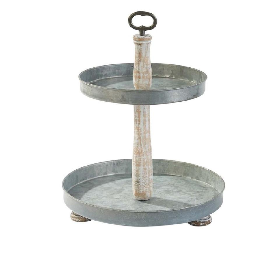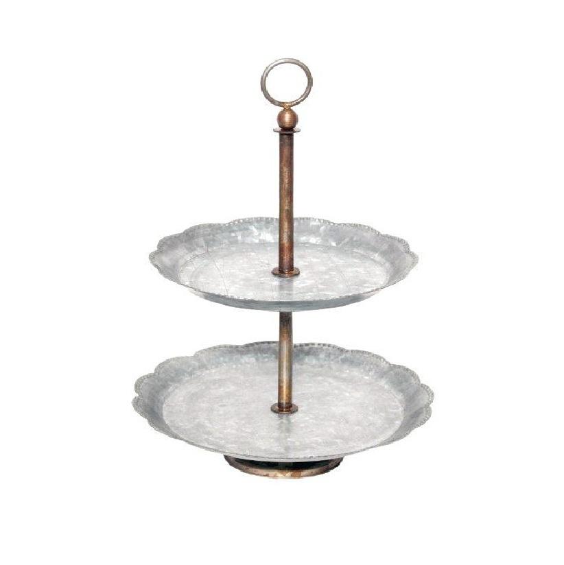 Support de service à 2 niveaux en métal galvanisé de haute qualité avec poignée, présentoir rond pour cupcakes et desserts, idéal pour les mariages et les fêtes