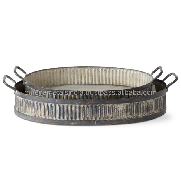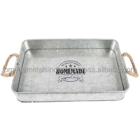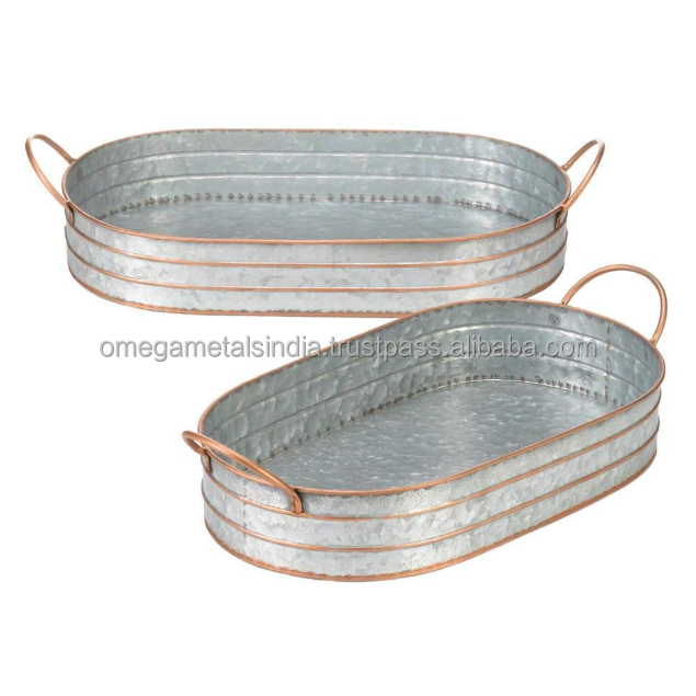 Plateau de service galvanisé de haute qualité avec poignées plateau orné fabricant et fournisseur de plateau de service pour Restaurant et hôtel