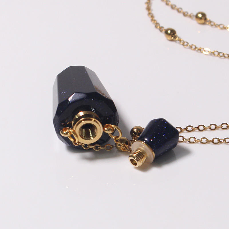 Haute qualité véritable cristal clair bouteille de parfum pendentif parfum bijoux huile essentielle bleu grès flacon collier pour les femmes