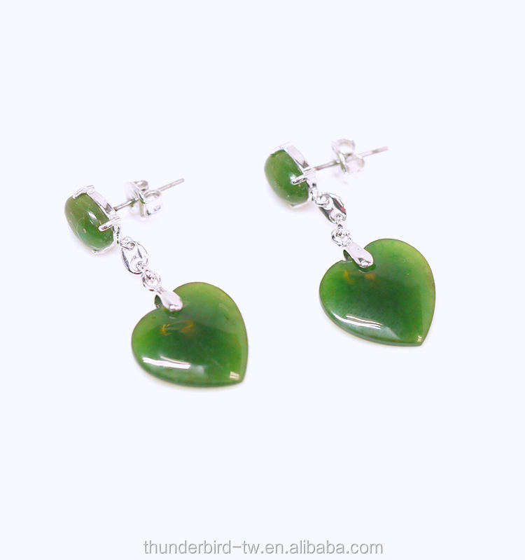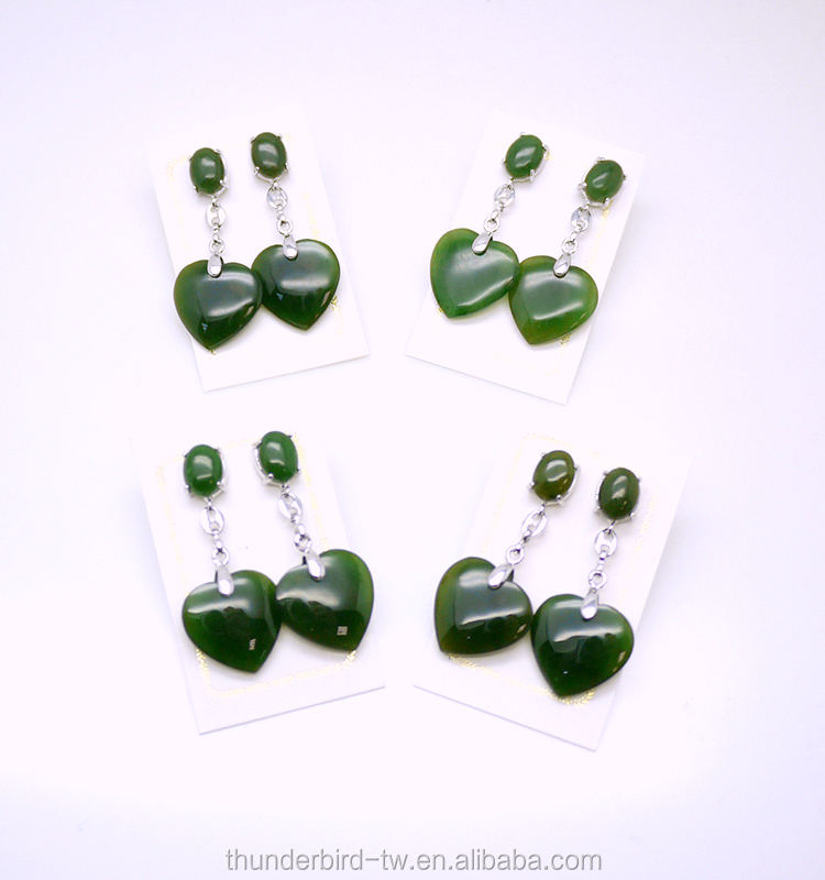 Boucles d'oreilles pendentif bijoux en jade néphrite cabochon coeur