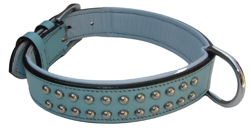 High Quality Genuine Real Harness Leather Dog Neck Collar Soft Padded Solid Pattern Steel Clinchers Decorative Rivet Pet Leashes