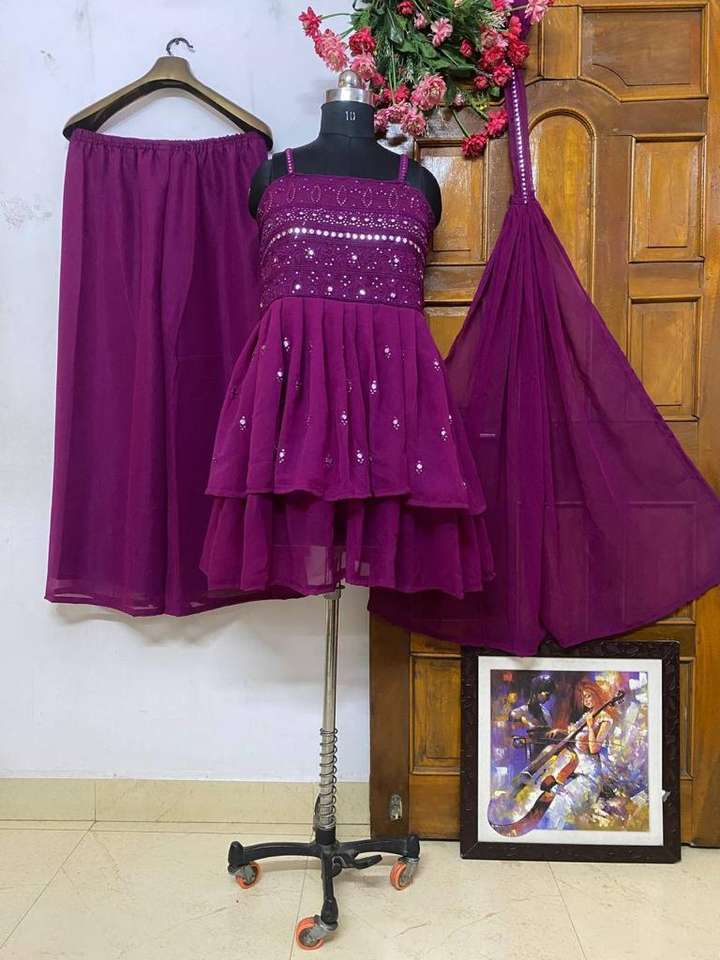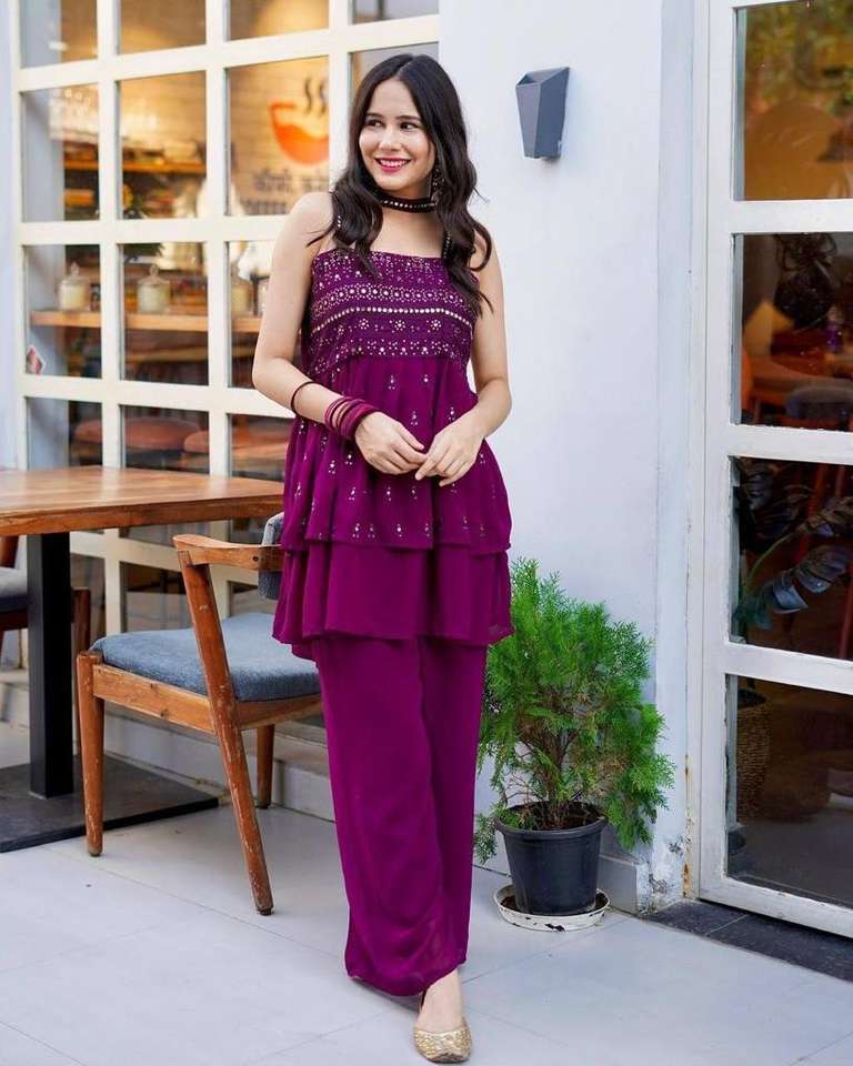 High Quality Georgette Top With Beautiful Georgette Plazzo With Foil Mirror Work & Sequence Work (Fully Stitched)