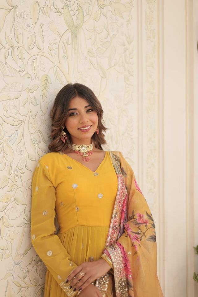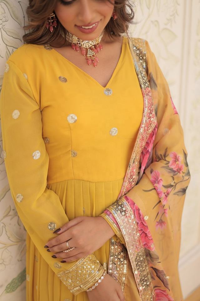 Top:FABRIC & WORK:- Faux Georgette with Embroidery Zari Sequins-work