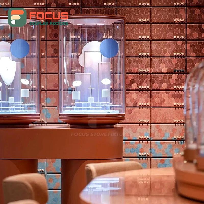 Vitrine à bijoux en verre de haute qualité, comptoir à bijoux en bois, étagère murale pour l'affichage de bijoux, luminaire de luxe