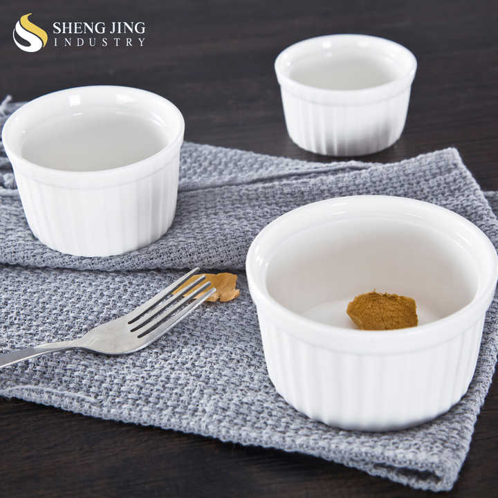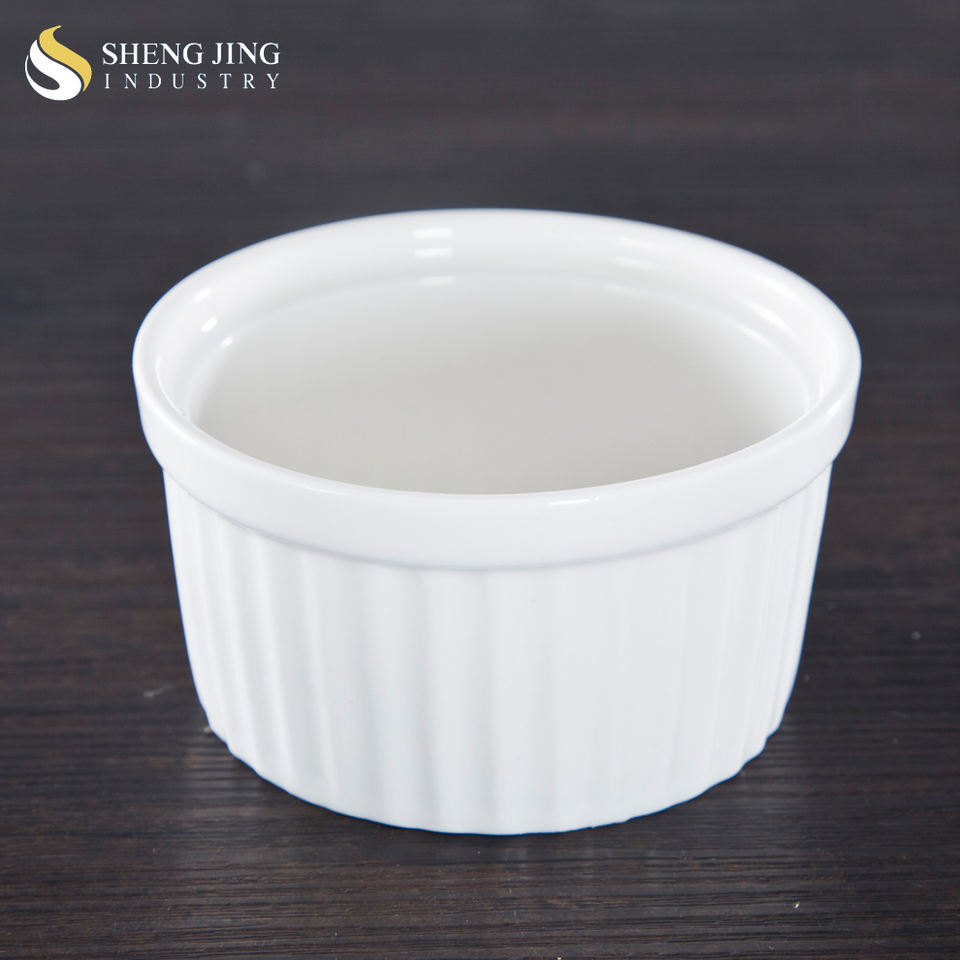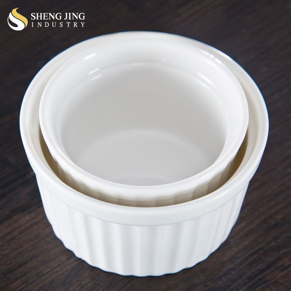 Haute qualité brillant blanc en céramique Mini gâteau bol rayé porcelaine cuisson pouding bol pour mariage fête Restaurant soufflé moule