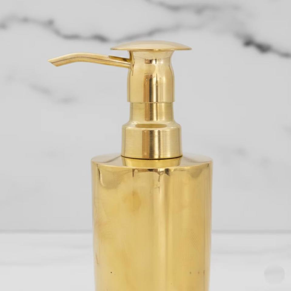 Distributeur de savon liquide en métal finition or de haute qualité, idéal pour la salle de bain et les comptoirs de lavabo, fabriqué en Inde