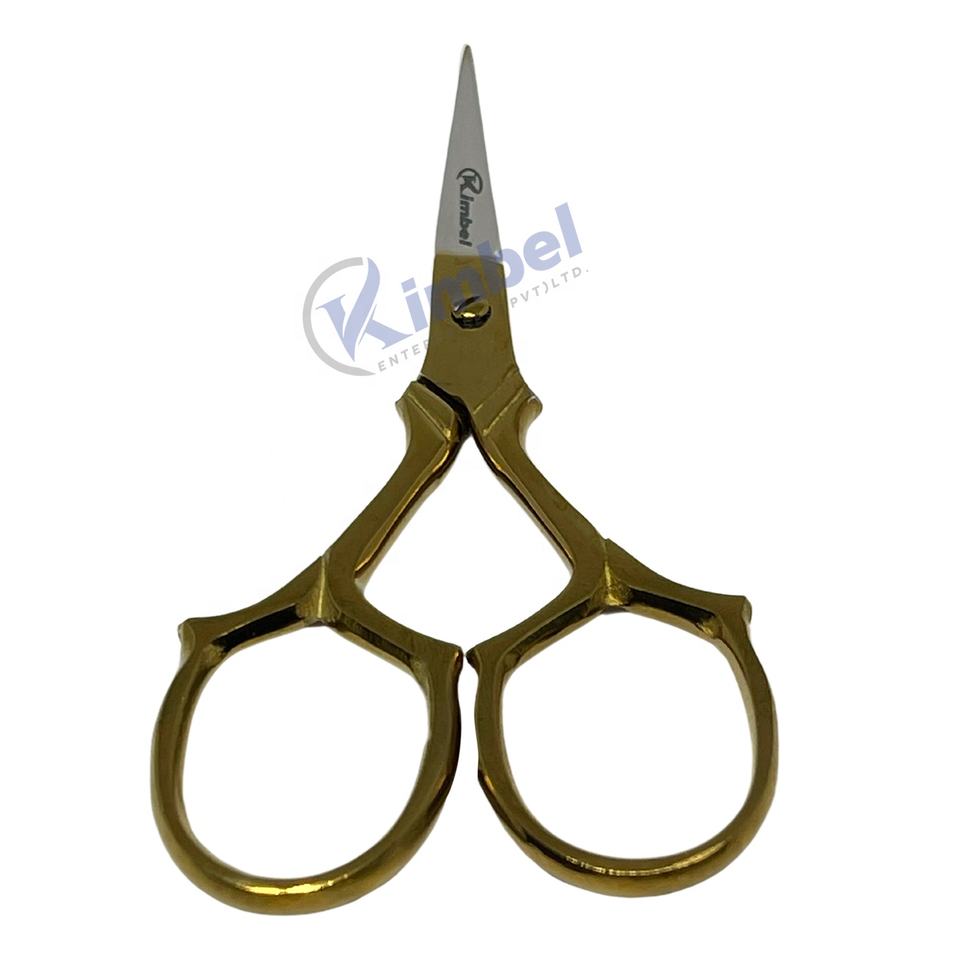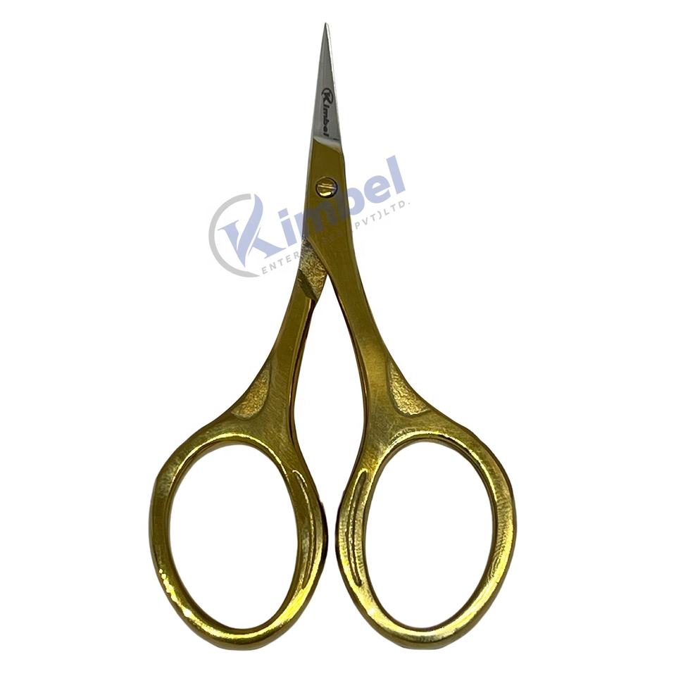 Ciseaux de beauté en acier inoxydable de haute qualité avec manche en or, ciseaux à ongles droits et tranchants pour la manucure