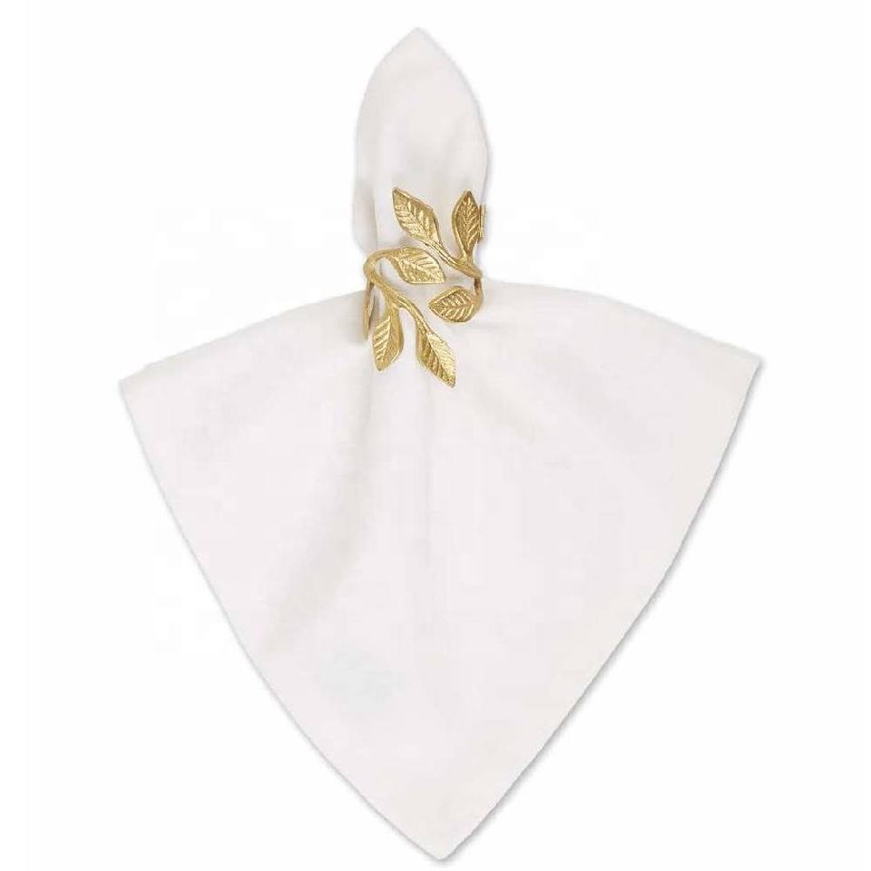 Porte-serviettes en laiton de haute qualité avec motif de feuilles d'or, en stock pour la décoration de table de mariage, d'anniversaire et de fête