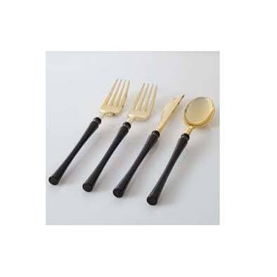 Haute Qualité Or Miroir Poli Avec Résine Noire Designer Poignée Couverts Art Échantillon En Gros Cuisine De Luxe Couverts Ensemble