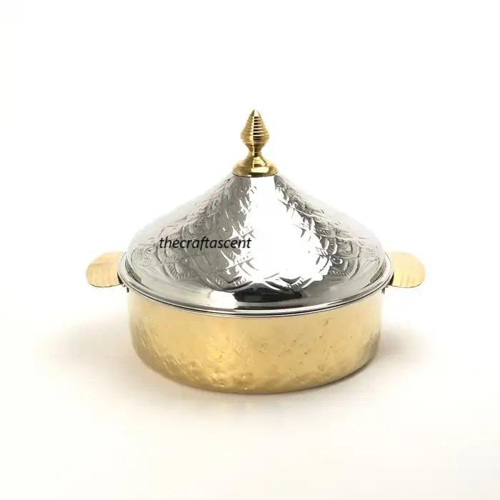Casserole de service de nourriture faite à la main en acier de qualité supérieure en or de haute qualité avec couvercle chauffe-plats de luxe pour hôtel et restaurant d'Inde