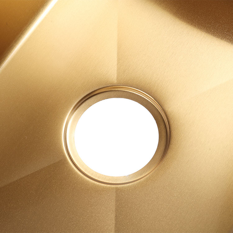 Évier de cuisine à bol unique en or de haute qualité en acier inoxydable Design carré installé à la main sans robinet