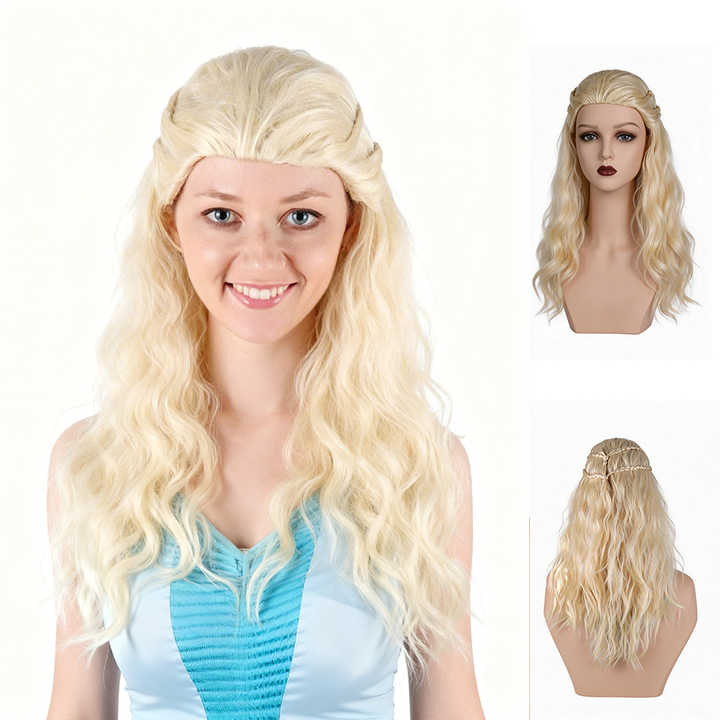Perruque Longue Bouclée Dorée de Haute Qualité, Style Mère de Dragons Targaryen, Chanson de Glace et de Feu, pour Cosplay Game of Thrones, en Fibre Haute Température