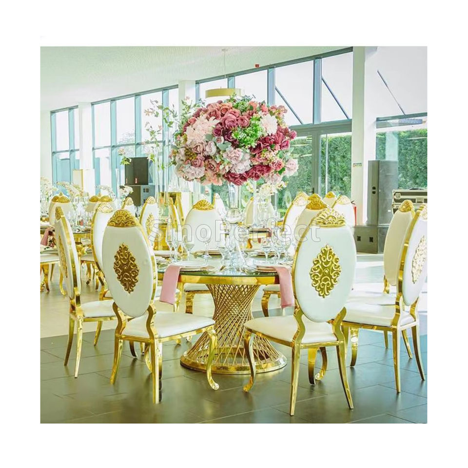 Ensemble de table et de chaises de mariage de haute qualité, design moderne doré, pieds en métal noir, pour banquet et fête