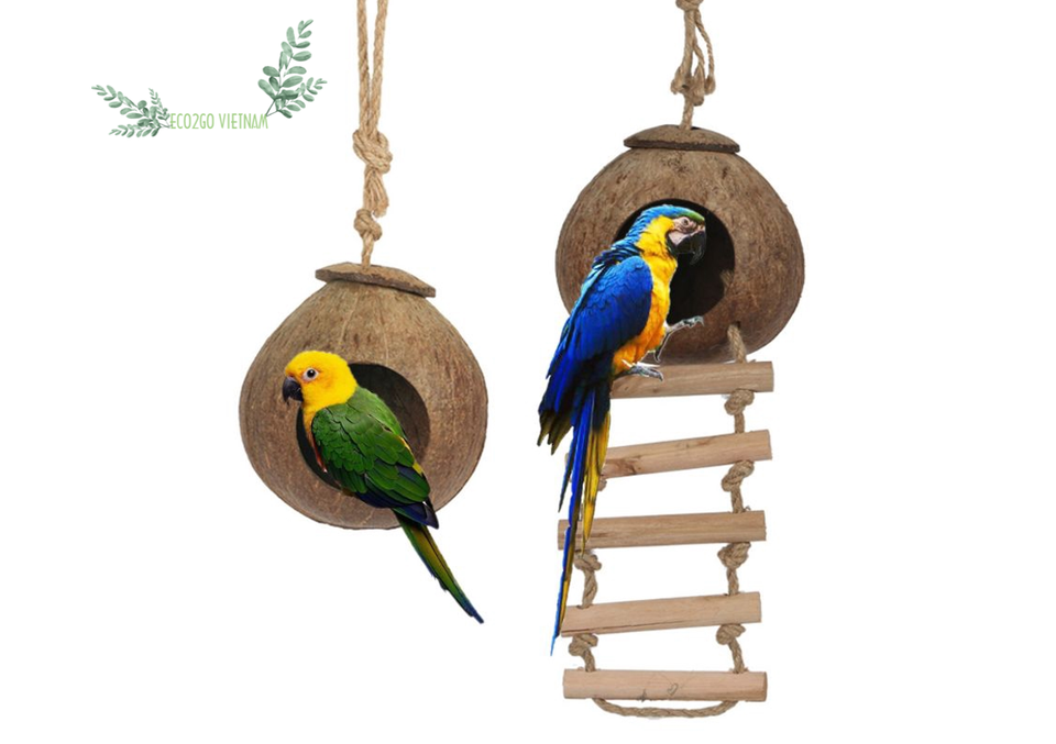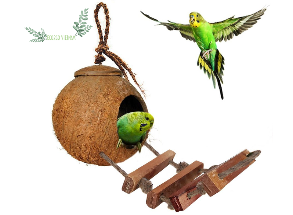 Haute qualité bon prix suspendu coquille de noix de coco maison d'oiseau pour un Hamster cage à oiseaux jouet fournitures d'oiseaux de compagnie à la main du Vietnam
