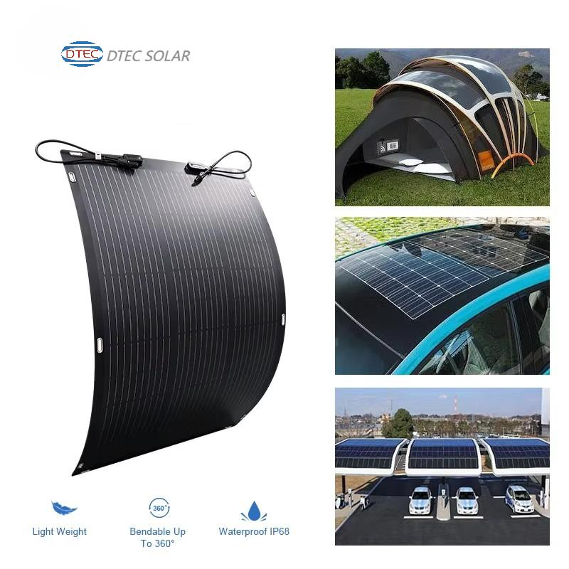 Module solaire flexible de haute qualité et haute efficacité 22% 210W 12V Panneaux solaires semi-rigides avec câbles Matériel PET