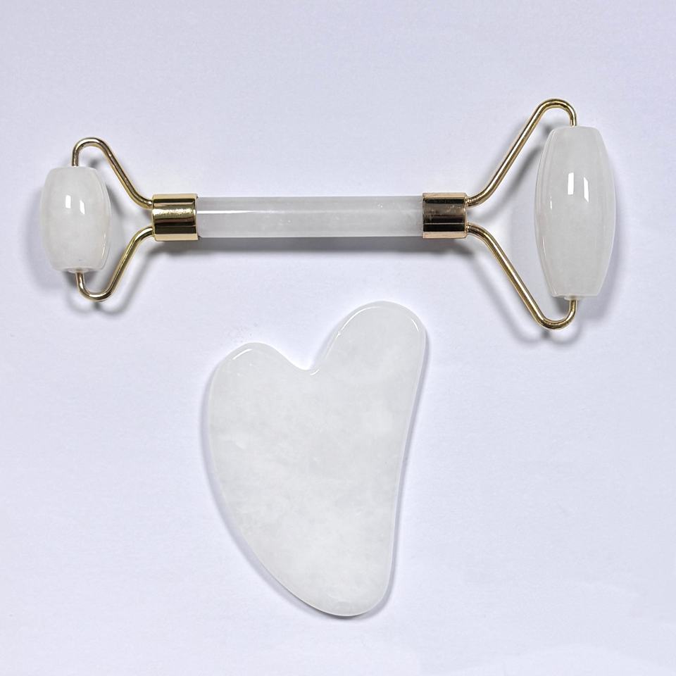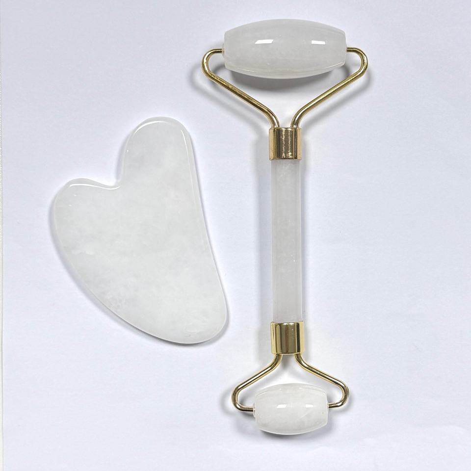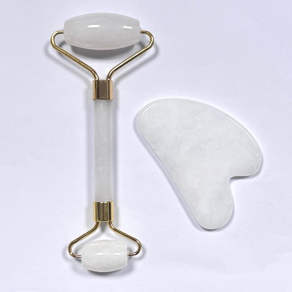Outil facial Guasha de haute qualité, masseur de beauté en jade, rouleau de jade naturel, ensemble Gua Sha en jade blanc