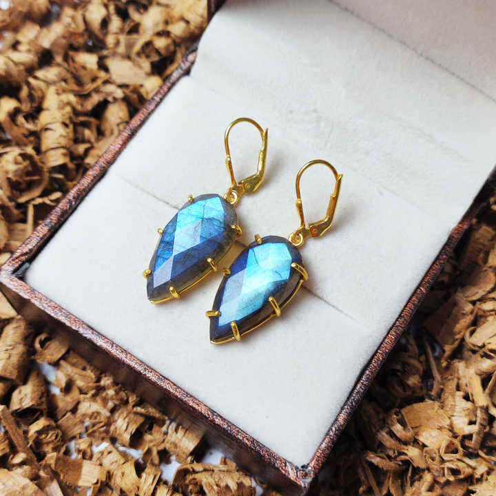 High Quality HARI OM CREATIONS Vintage Brass Dangle Earring 12X15MM Labradorite Stone Water Drop for Teenage Girls
