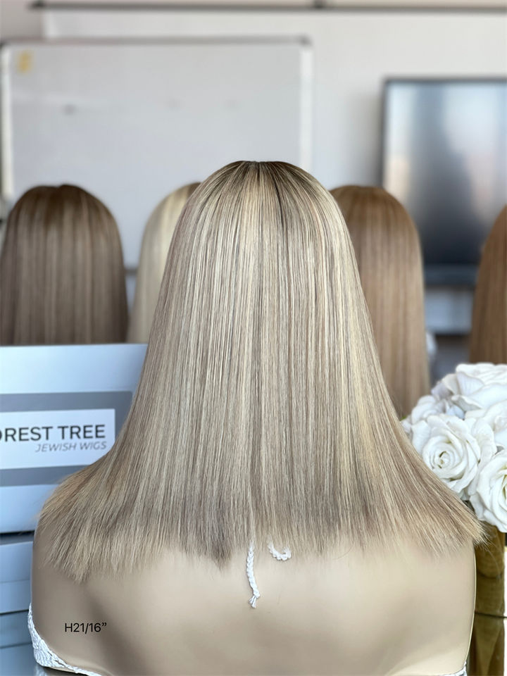 Haute qualité HD dentelle haut juif casher perruque 16 pouces de long cendré blond couleur Super légère couche pas d'enchevêtrement