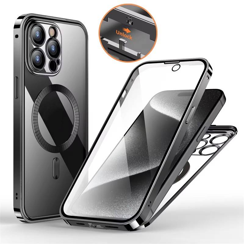 Coque de téléphone de Protection à 360 ° à écran HD de haute qualité pour iPhone 12 13 14 15ProMax cadre en aluminium antichoc couverture de charge magnétique