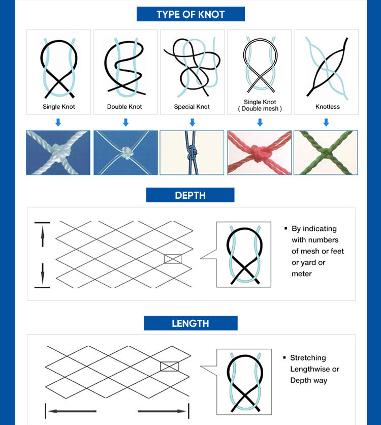 Filet de pêche tressé en HDPE et nylon de haute qualité, nœuds renforcés pour la capture de gros poissons, filet en plastique à prix compétitif