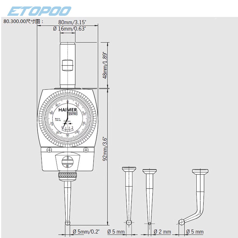 Instrument de centrage Haimer de haute qualité 80.300.00FHN, détecteur de bordure 3D, instrument de centrage mécanique Hanmo, sonde
