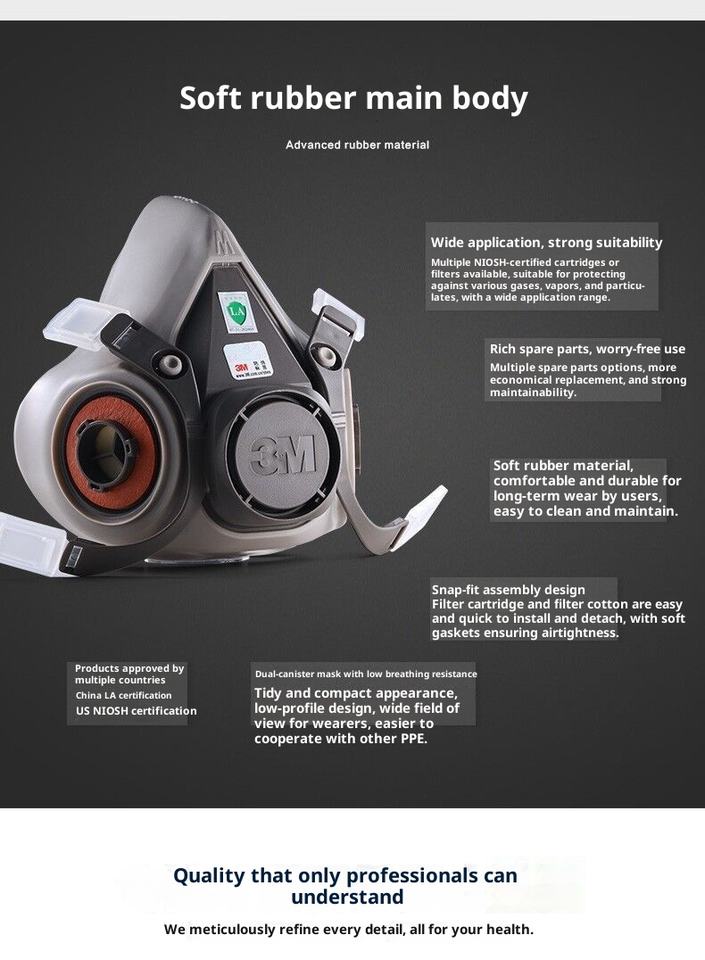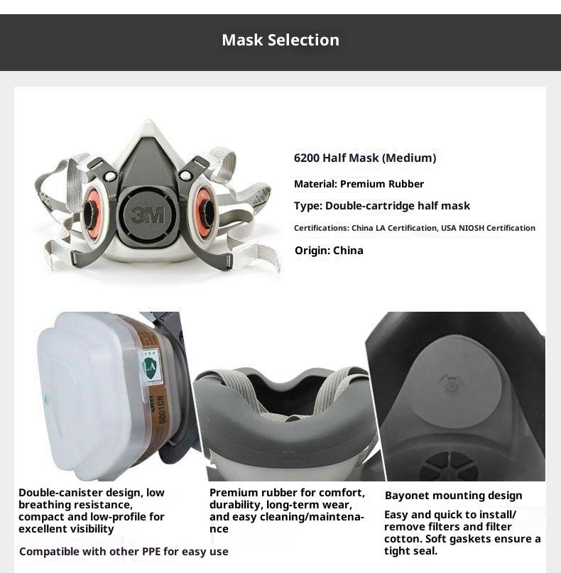 Demi-masque de haute qualité, respirateur à peinture bon marché avec protection contre la poussière et les gaz, écrans faciaux
