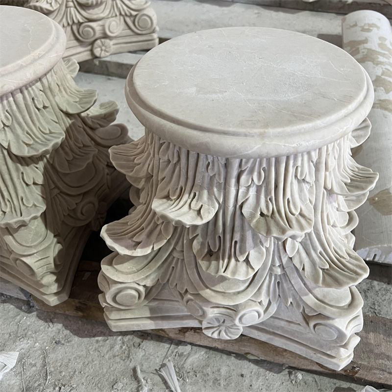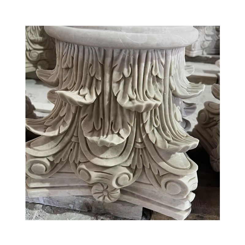 Haute qualité sculpté à la main en marbre naturel colonne capital personnalisé pierre pilier haut pour la décoration de la maison