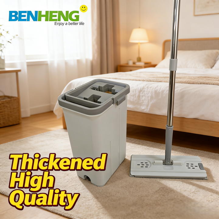 Flat Mop with Self-washing & Squeezee Drying Bucket Set Mop