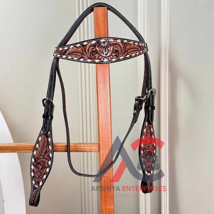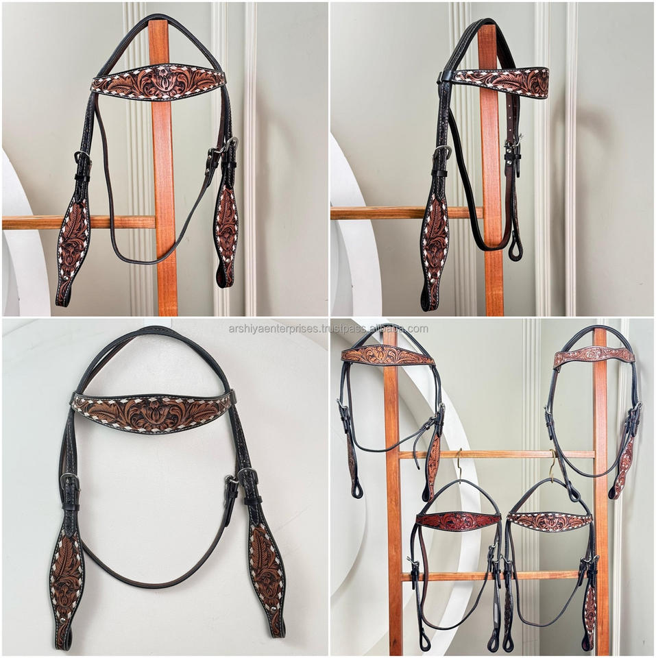 Headstall de cheval en cuir usiné à la main de haute qualité avec bride réglable occidentale sculptée avec matériel inoxydable pour l'équitation