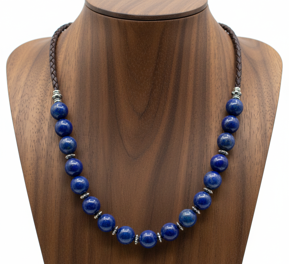 Collier en argent tibétain perlé de haute qualité, fait à la main, 18 pouces, design géométrique tendance pour femmes, perles de lapis-lazuli naturelles, cadeau